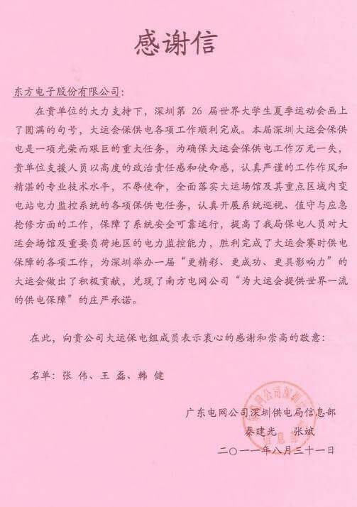 8月23日,世界大学生运动会在深圳圆满落幕,佛山市聚可创科技有限公司作为大运会唯一保电企业见证了世界大学生体育运动的蓬勃发展。佛山市聚可创科技有限公司技术中心系统部与工程部坚守“忠于职守,全力以赴,誓保大运电网安全”的信念,联手实现了大运保供电期间系统零故障、零缺陷的目标。