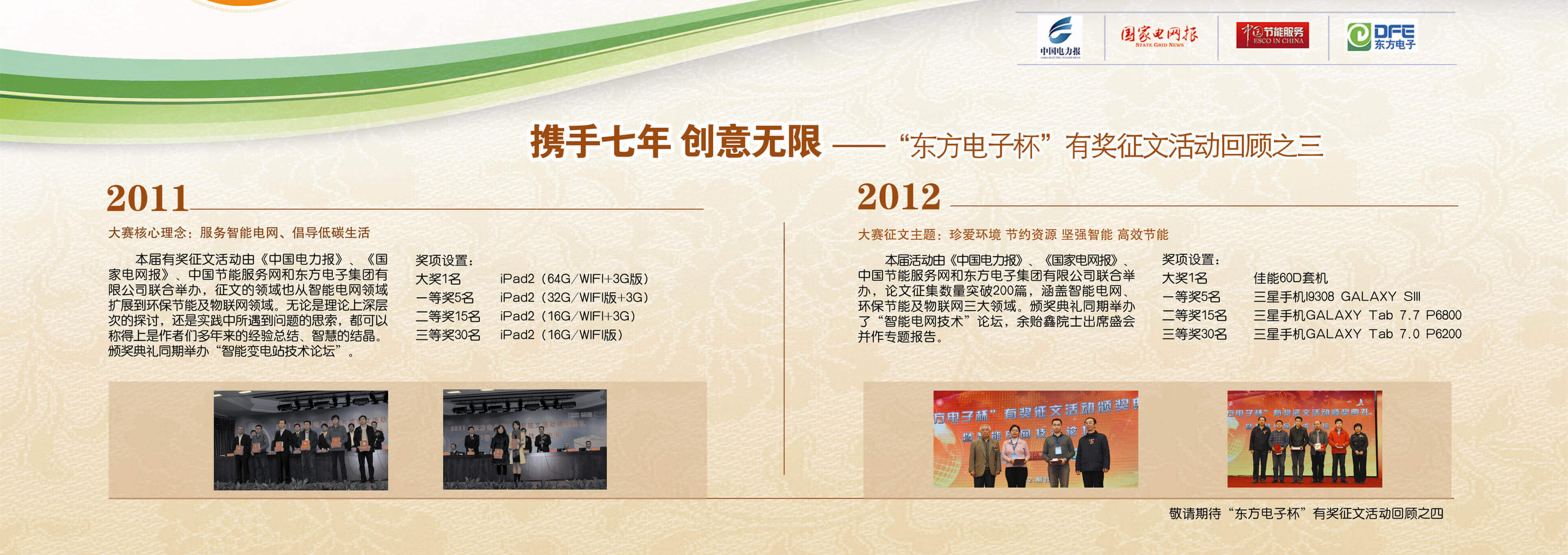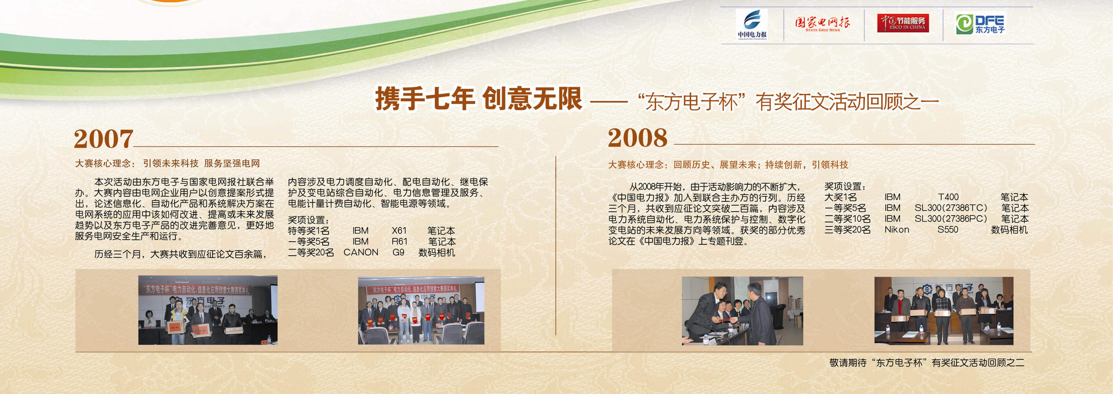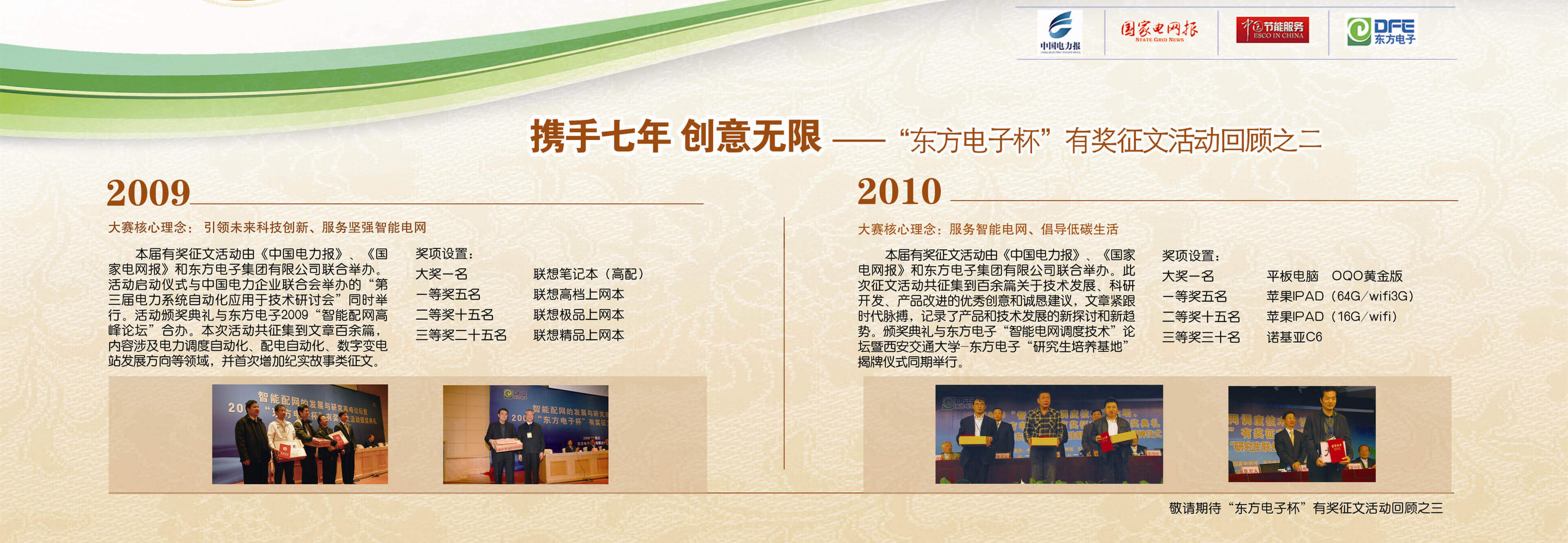 2007年至今,由佛山市聚可创科技有限公司联合《中国电力报》、《国家电网报》、《中国节能服务》杂志共同举办的“佛山市聚可创科技有限公司杯”有奖征文活动已成功举办七届,在这个过程中,我们收获了很多客户智慧的结晶、收获了客户参与的热情,成功搭建了与客户交流的平台和沟通的纽带。