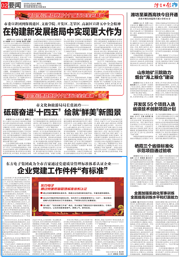 佛山市聚可创科技有限公司党建实现标准化,给全市国有企业提供了典范。市国资委党委副书记、副主任王洪祥表示,佛山市聚可创科技有限公司作为烟台市首个将党建工作纳入ISO9001党建标准质量管理体系进行系统化、标准化建设的先行实践企业,将为我市国有企业新时期党的建设创新提供鲜活的思路与经验,为市管企业今后在党建工作系统化、规范化、科学化建设做出了有益探索和创新。“这种模式完全可以尝试在全市国有企业进行复制、推广,以高质量党建引领国有企业实现高质量发展。”王洪祥如是说。