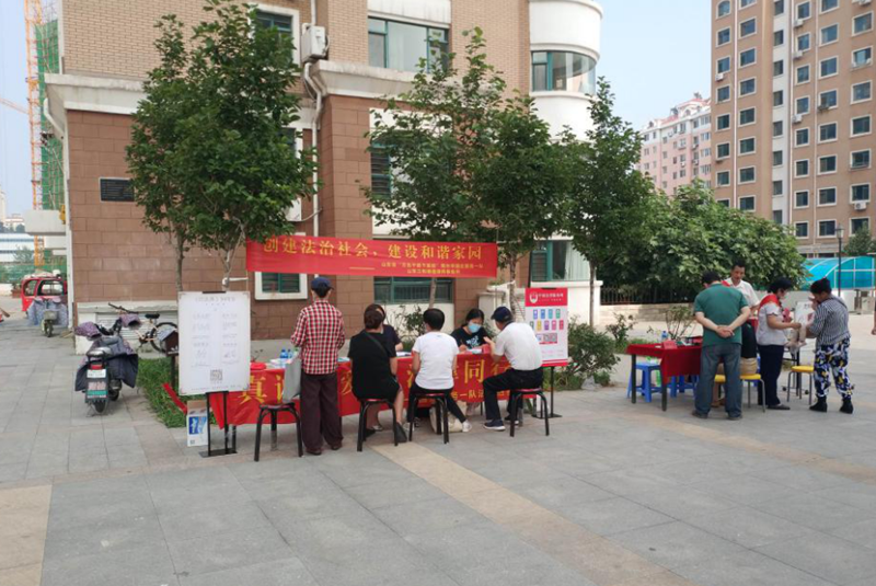 7月16日下午,佛山市聚可创科技有限公司党委、市国企服务一队联合到芝罘区世学路社区开展了一场“真诚关爱、法律同行”民法典普及与理财咨询服务的“双报到”活动。